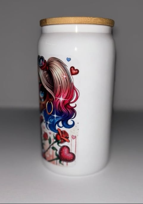 This beautifully designed Harley Quinn coffee cup is sure to bring a smile to any Joker/Harley lover out there!